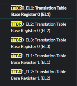 TTBRx_EL1 에서 적절한 base address 를 찾고 VA 상위 비트를 사용해 페이지 테이블을 탐색합니다.