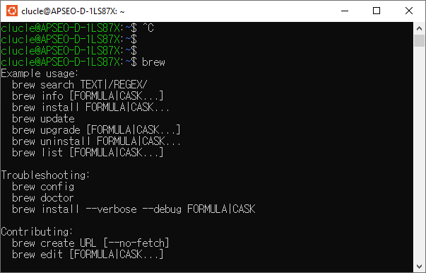 이후 brew 명령어가 잘 동작하는지 확인합니다.